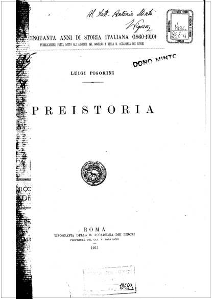 Se è indubbio che Pigorini creò le basi istituzionali della ricerca preistorica in Italia, è altrettanto vero – come notò Renato Peroni – che il suo potere si tradusse con il tempo in un isolamento intellettuale che finì per nuocere alla capacità di Pigorini di elaborare una sintesi autorevole e affidabile sul popolamento preistorico dell’Italia. Il contributo del 1903 che qui riproduciamo ne è – crediamo – un esempio.