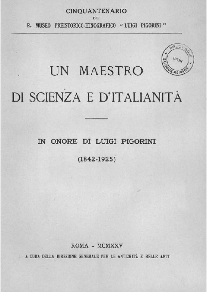 Antonielli U., ed. (1925) - Un maestro di scienza e d'italianità: in onore di Luigi Pigorini (1842-1925). Roma: G. Bardi.