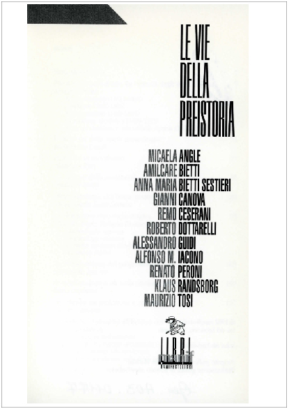 Peroni R. (1992) - Preistoria e protostoria. La vicenda degli studi in Italia, in M. Angle et al. - Le vie della Preistoria. Roma: Manifestolibri: 9; 13-20; 30-41