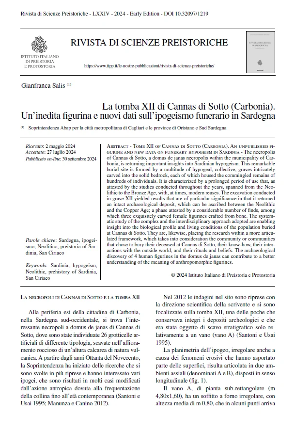 G. Salis – La tomba XII di Cannas di Sotto (Carbonia) : un’inedita figurina e nuovi dati sull’ipogeismo funerario in Sardegna